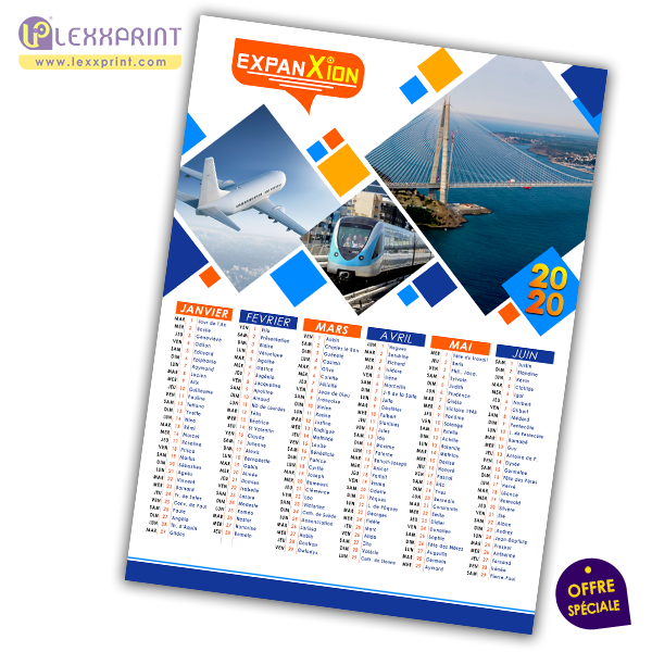 Le calendrier de banque et un calendrier rigide sur lequel l’impression est en quadri, recto-verso, sur couché moderne brillant 375g plus un vernis machine.