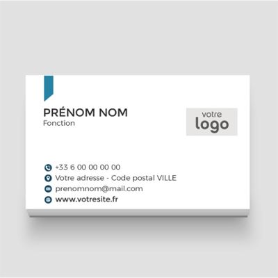 La carte de visite professionnelle discount est imprimée sur un papier couché 350 g/m², en recto simple, sans pelliculage (sans film de protection)