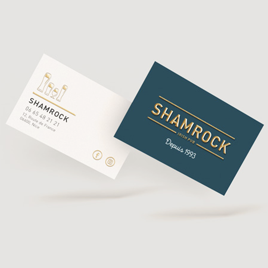 La carte de visite privilège est imprimée sur un papier épais (350 g/m², pas moins) en recto-verso. Elle est bouclée en finition avec un pelliculage recto-verso mat au touché soft.