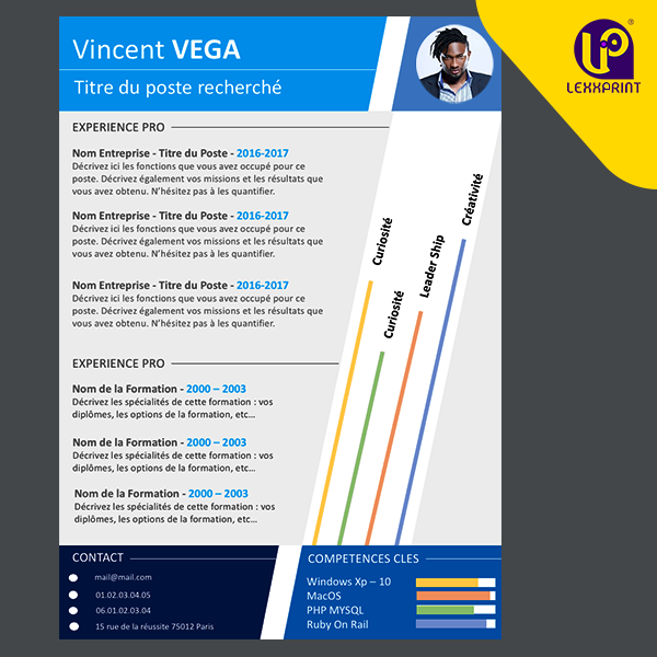 NB : Vous pouvez personnaliser votre CV LEXXPRINT selon vos préférences de couleurs.