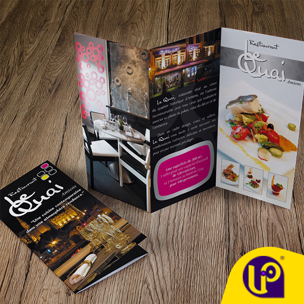 Le dépliant 3 volets est le dépliant le plus répandu. Le dépliant est imprimé sur papier fin (80 gr à 170 gr), il est adapté à une diffusion de masse dans le cadre d’opération éphémère. Le dépliant 2 volets offre le plus large choix de formats. Pour les papiers épais ou le pelliculage, optez pour l’impression de plaquette publicitaire